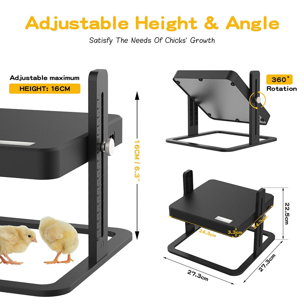- Ideal Size for Your Flock: Measuring 27x27cm, this heating plate fits up to 10 to 20 newly hatched chicks or other fowl. Adjust the height to ensure direct contact with the bottom of the brooder plate.