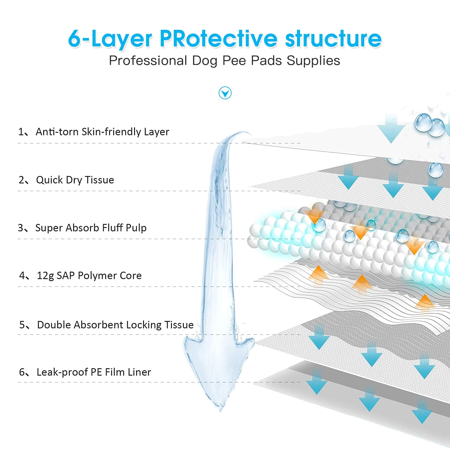 - Super Absorbent and Thicker - Thickened disposable pads for dogs and 6-layer protection design makes our Clevinger dog pee pee pads more absorbent than the most puppy potty pads on the market.