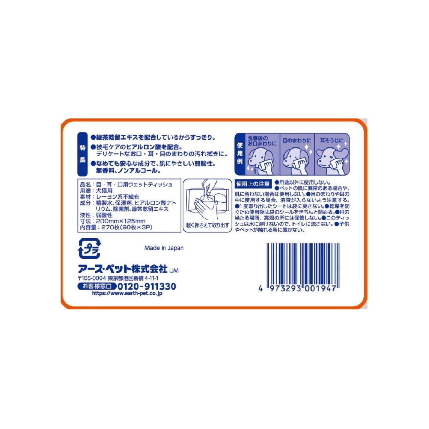 Earth Japan Oral and Nose Cleansing Towels for Cats & Dogs - 90pcs [6-PACK]