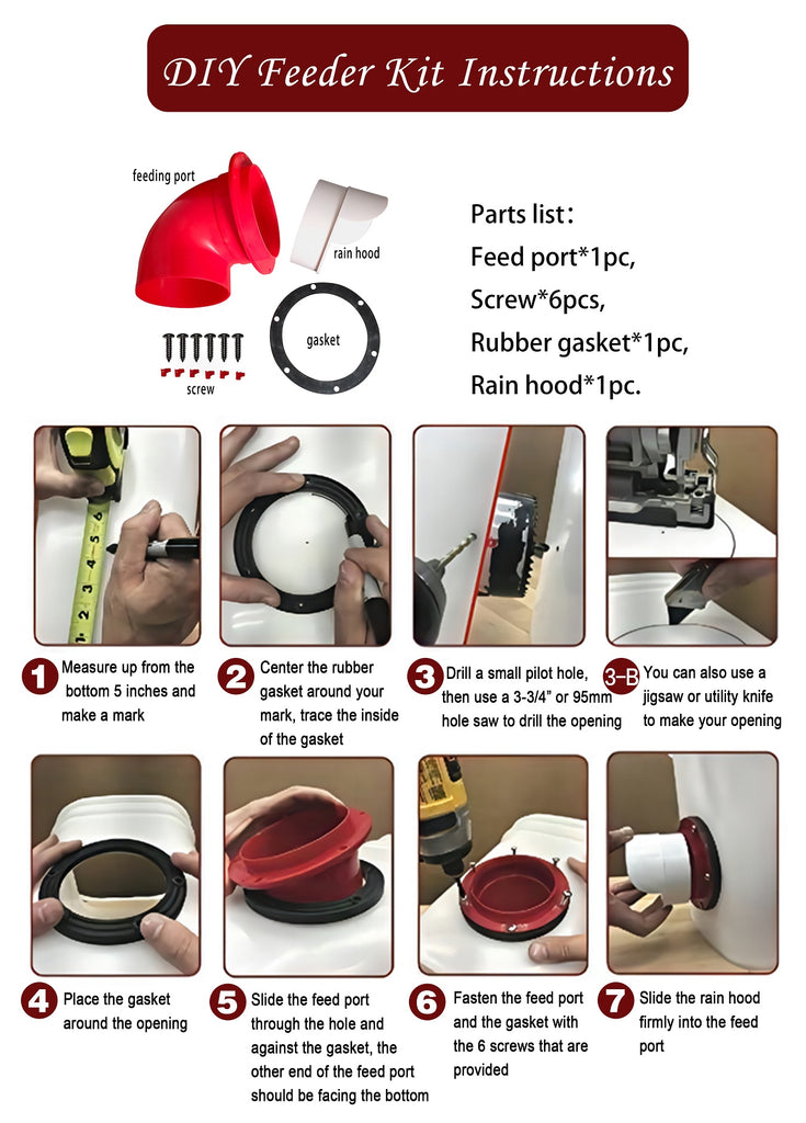 - DIY Port Set: Easy to use for creating feeders from buckets, barrels, or bins.