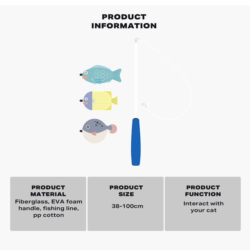 Interactive Fun: Designed to attract your cat's attention, this fishing rod comes with three fish toys that dangle enticingly, encouraging your cat to chase, pounce, and play. It's perfect for keeping your cat active and engaged.