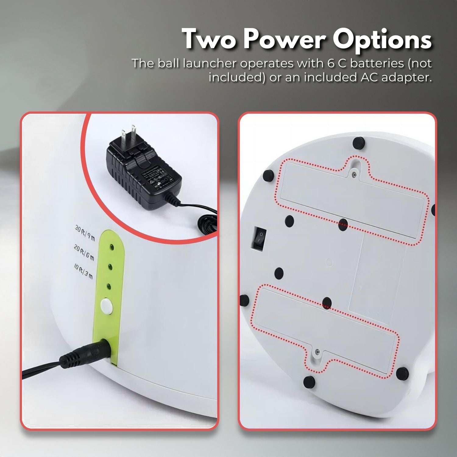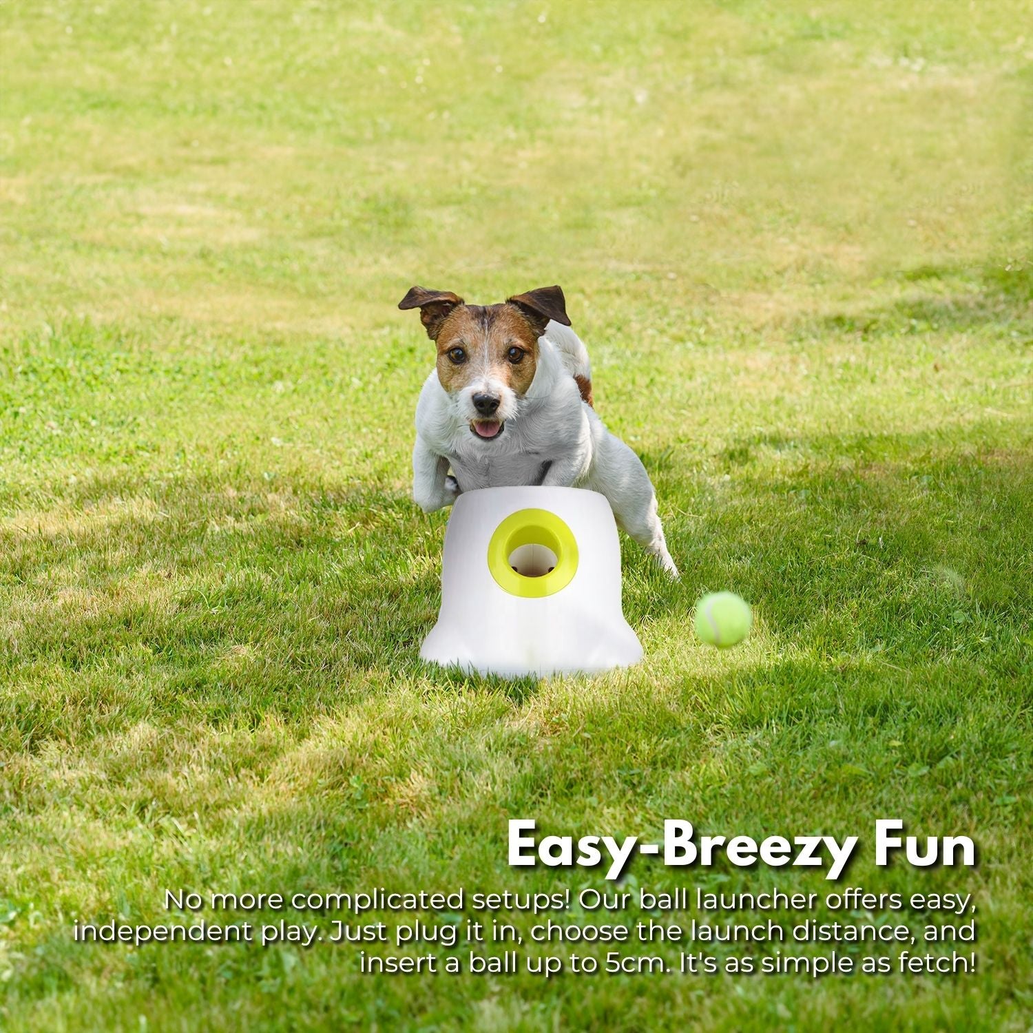 Launch Distance Adjustable: This launcher can shoot balls up to 3m, 6m, or 9m with the press of a button. It includes three sturdy tennis balls for limitless entertainment.