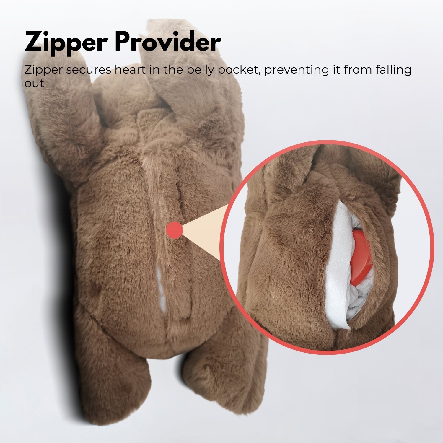- Safe and Comfortable Design: Made of soft, comfortable, skin-friendly plush materials. The belly pocket is securely closed with a zipper to prevent the heart from falling out.