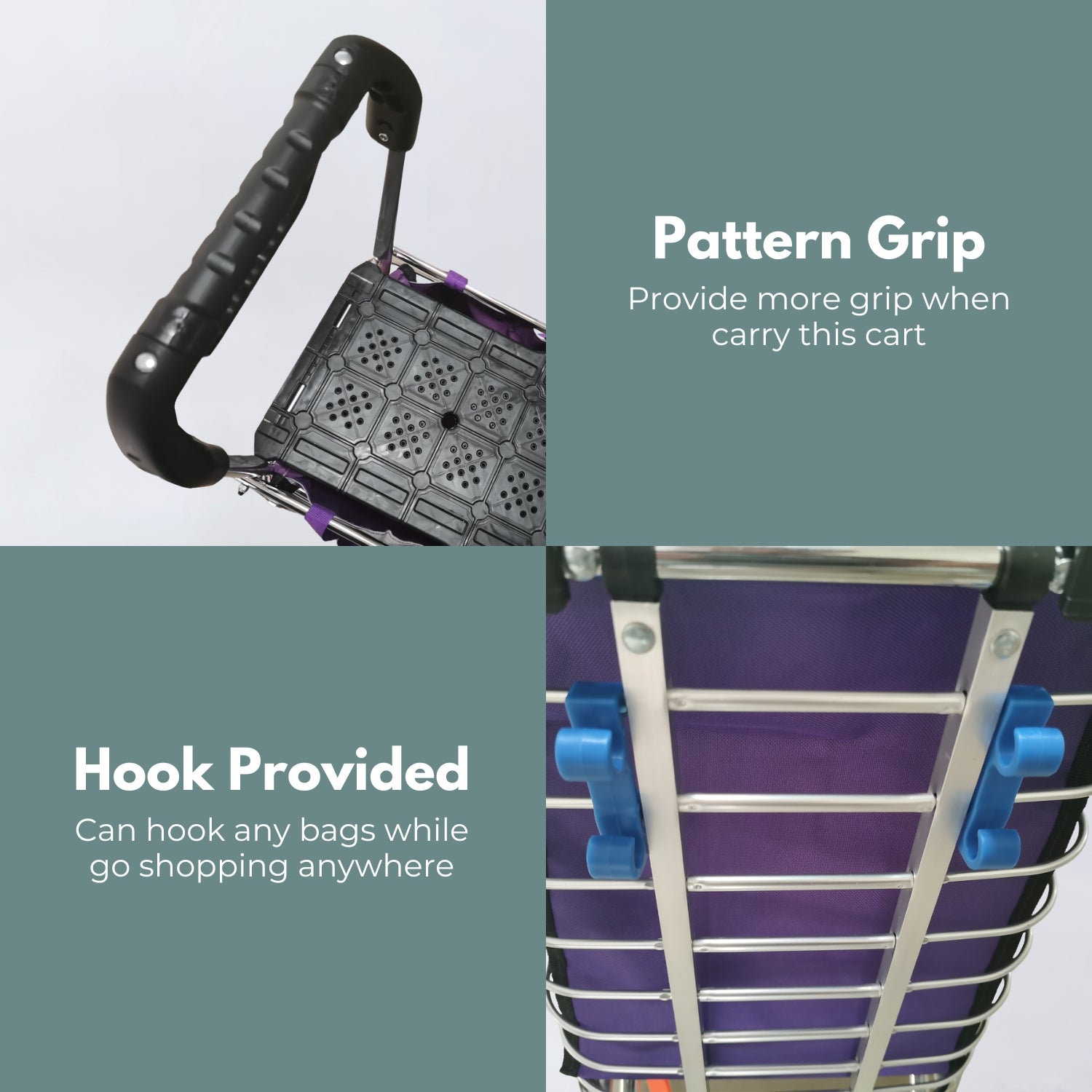 GOMINIMO Foldable Aluminum Shopping Trolley Cart with Wheels and Lids (Purple and Silver)