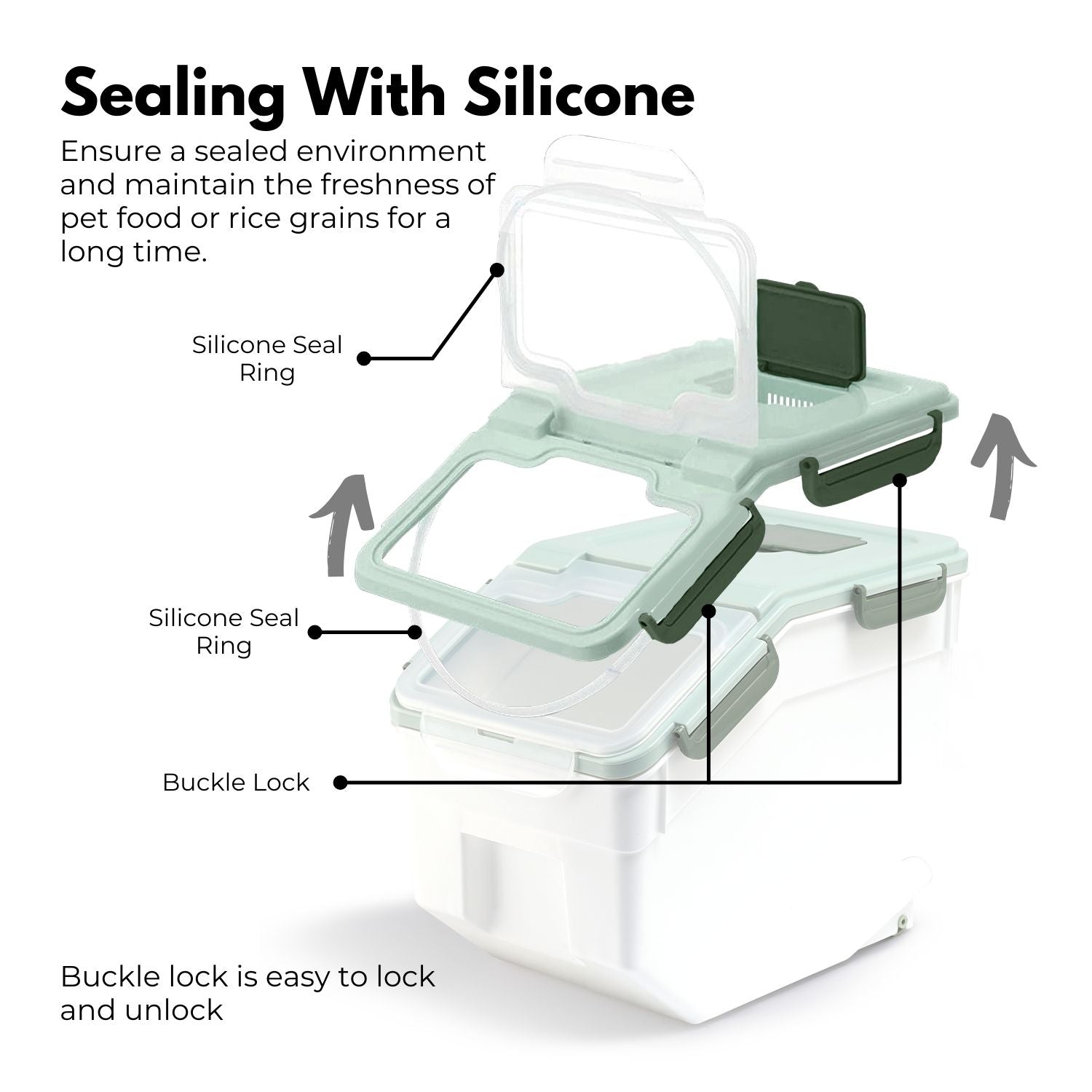 Designed with convenience and durability in mind, this container is perfect for storing pet food, rice, grains, and more.