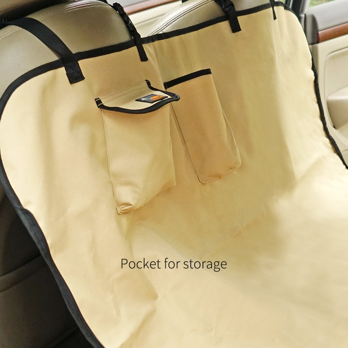 2-layer material protects back seat from scratches, dirt, spills, hairs and other messes. Pockets included for toys, snacks, leashes, etc.