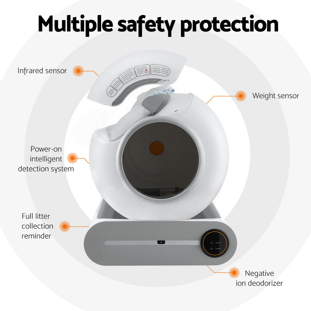 Introducing our advanced i.Pet cat litter box featuring a negative ion deodoriser, one-click sand disposal, and an intelligent power-on detection system. Designed for safety, spaciousness, and odour control, this smart litter box cleans only when your cat is outside and includes a full waste collection reminder for hassle-free maintenance.