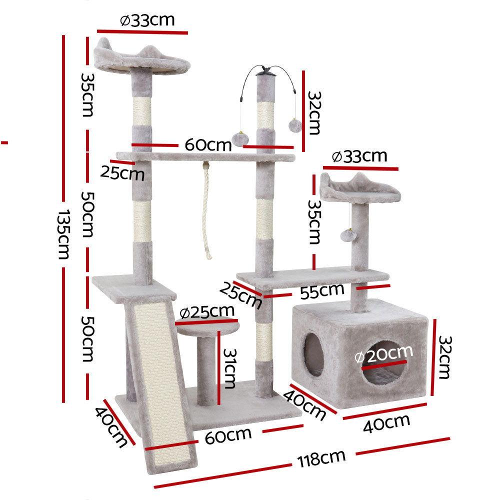 i.Pet Cat Tree 135cm Tower Scratching Post Scratcher Wood Condo House Toys Grey