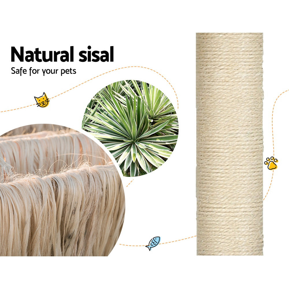 Pamper your cat with the i.Pet 178cm Cat Tree, designed to fulfill all their natural instincts. This large-sized cat tree features multiple levels, offering ample space for your cat to scratch, climb, and lounge. The sturdy wooden construction ensures stability, while the natural sisal posts provide a perfect outlet for scratching, keeping your furniture safe. The plush, soft linen cover offers comfort as your cat rests on the plush bed platforms, fabric hammock, or inside the cozy cubicles. The addition of a detachable acrylic bowl adds a touch of luxury, allowing your cat to observe the surroundings from above. With various napping and playing spots, this cat tree is sure to become your cat’s favourite place in the house.