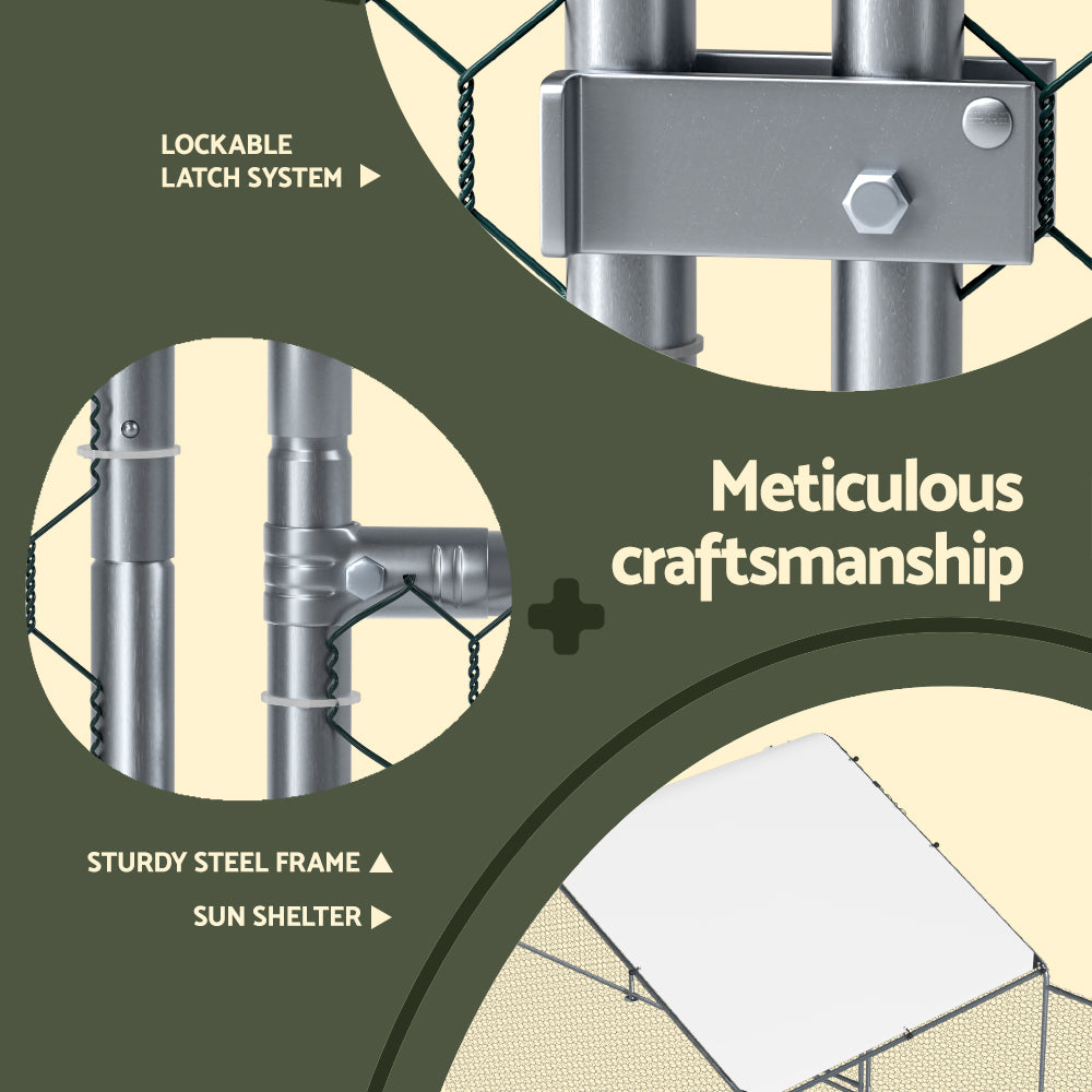 Provide your pets with a secure and roomy environment with the i.Pet Large Walk-In Chicken Coop. Designed for chickens, rabbits, and ducks, this coop offers ample space for movement, ensuring your pets are comfortable and stress-free. Constructed from heavy-duty galvanised steel, it boasts a weather-resistant roof and wire sidewalls, providing excellent ventilation and protection from the elements.