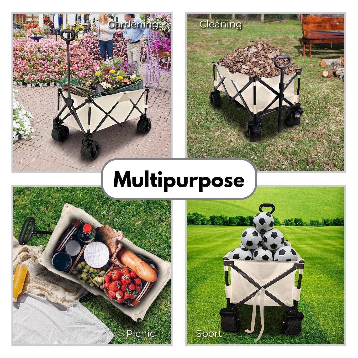 Generous Storage Capacity for Convenience: The Wagon Trolley Cart is designed with a spacious storage capacity, providing ample room for your belongings. Whether you're transporting groceries, outdoor gear, or other items, the cart offers a generous space to accommodate your needs, making it a versatile and practical solution for various tasks.